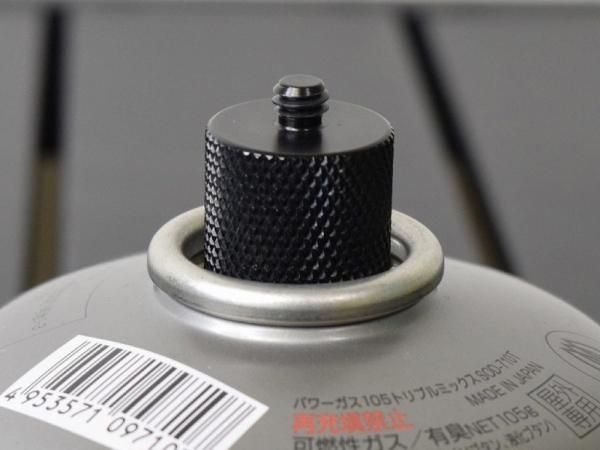 OD缶ネジ→1/4“オスネジの変換アダプター。空になったOD缶を再利用できる一品。1/4”メスネジを採用しているLEDライトや扇風機をOD缶に接続することが可能。